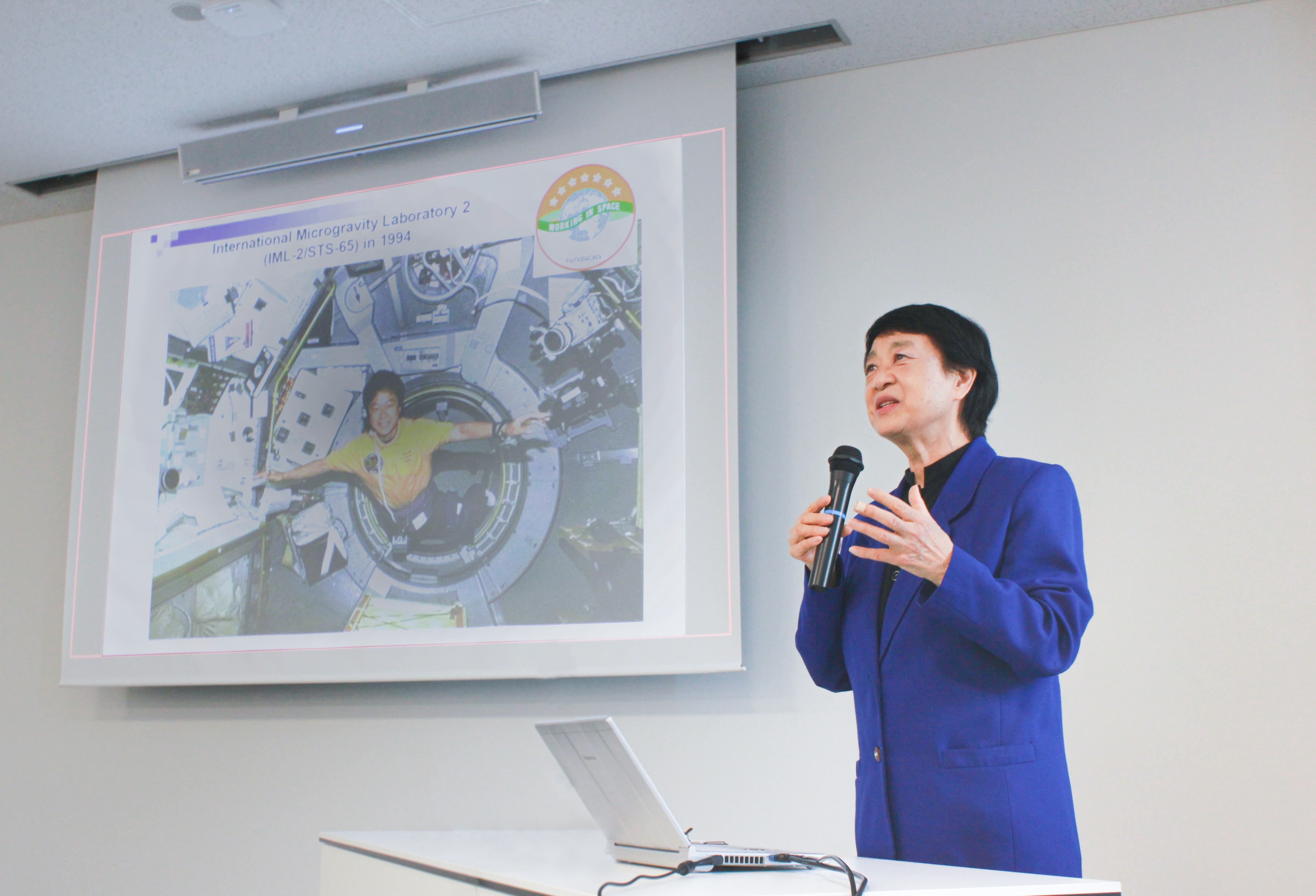 3月16日に執り行われた新開発棟の竣工式では、同地区で月面等宇宙開発における建設活動に資する研究開発に取り組んでいることから、東京理科大学特任副学長であり宇宙飛行士の向井千秋氏をお招きし、「宇宙開発の展望と期待」をテーマとした記念講演会を開催しました。