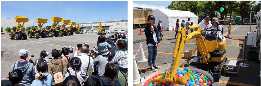 イベントではゲーム・飲食の模擬店が多数出店、建機デモンストレーションや4種類の製品(ブルドーザー、油圧ショベル、ホイールローダー、モーターグレーダー)の生産を行う建設機械組立工場開放(*1)など、建設機械を間近でご覧いただける機会となっております。
