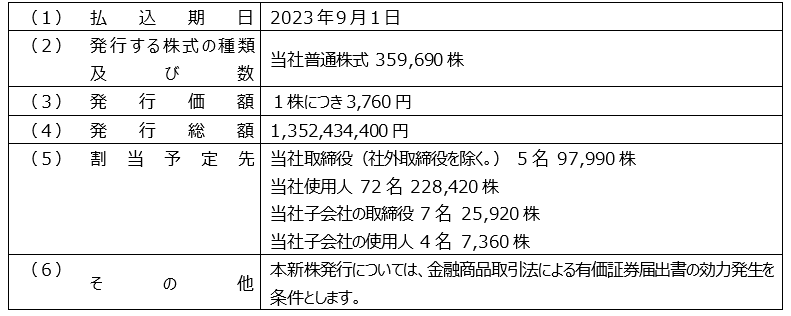 当社は、2023年7月14日開催の取締役会において、下記のとおり、新株式の発行(以下「本新株発行」といいます。)を行うことについて決議いたしましたので、お知らせいたします。