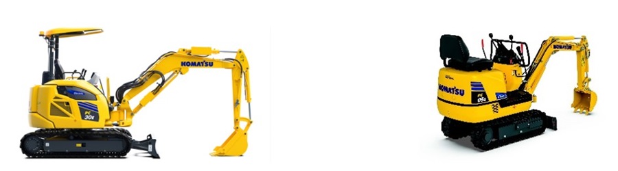 【写真左:PC30E-6電動ミニショベル、写真右:PC05E-1電動マイクロショベル】