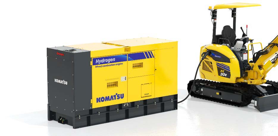 コマツ(社長:小川啓之)は、電動ミニショベル向けの給電装置として水素混焼エンジンを用いた発電機(以下、水素混焼発電機)のコンセプト機を、デンヨー株式会社(社長:吉永隆法)の協力のもと開発しました。2024年度上期にお客さまの現場にてコマツの電動ミニショベル「PC30E-6」を使用して頂き、本機により給電する実証実験(PoC)を行う予定です。お客さまの実際の現場でのPoCを通し、給電装置のニーズ・ノウハウと水素活用に向けた課題を明確にしていきます。
