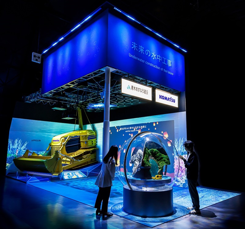 コマツ(社長:小川啓之)と青木あすなろ建設(社長:辻󠄀井靖)は、3月10日に、公益社団法人2025年日本国際博覧会協会が開催した未来社会ショーケース事業「フューチャーライフ万博・未来の都市」パビリオン完成記念式典にて、共同出展する「未来の水中工事」の展示プレイスを初公開しました。