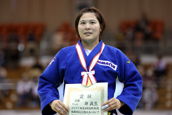 4月5日~6日に福岡国際センター(福岡県)で行われた2025年全日本選抜柔道体重別選手権大会に、コマツ女子柔道部から6名の選手が出場し、78kg級の泉真生選手が優勝しました。