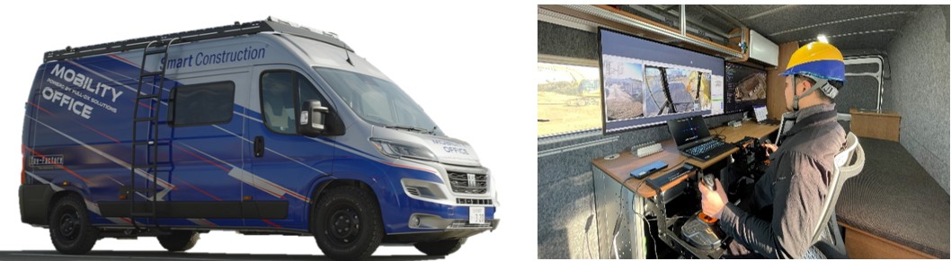 【「Smart Construction Teleoperation - モビリティーオフィス」車両イメージ(左)と内装例(右)】