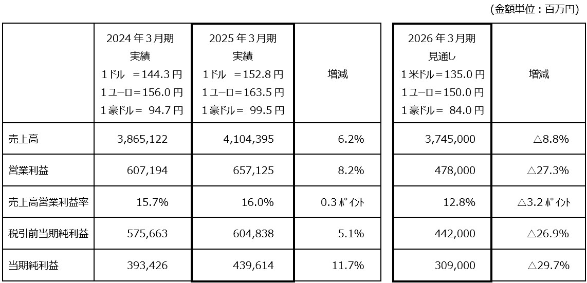 これにより、2026年3月期の連結業績は減収減益となる見通しです。