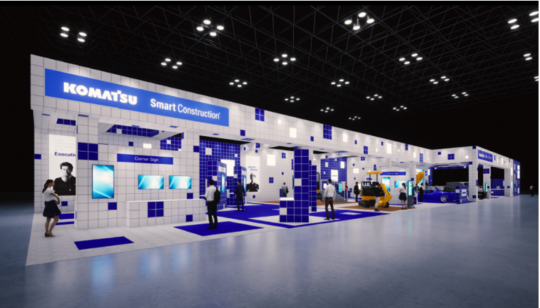 屋内ブースでは、「PC200i-12から生まれる未来の現場をお客様と共に創る」をコンセプトに、PC200i-12や、スマートコンストラクション®が提供するPC200i-12と親和性の高いアプリ、また、建設機械向けの遠隔操作システム「Smart Construction Teleoperation」などを展示します。