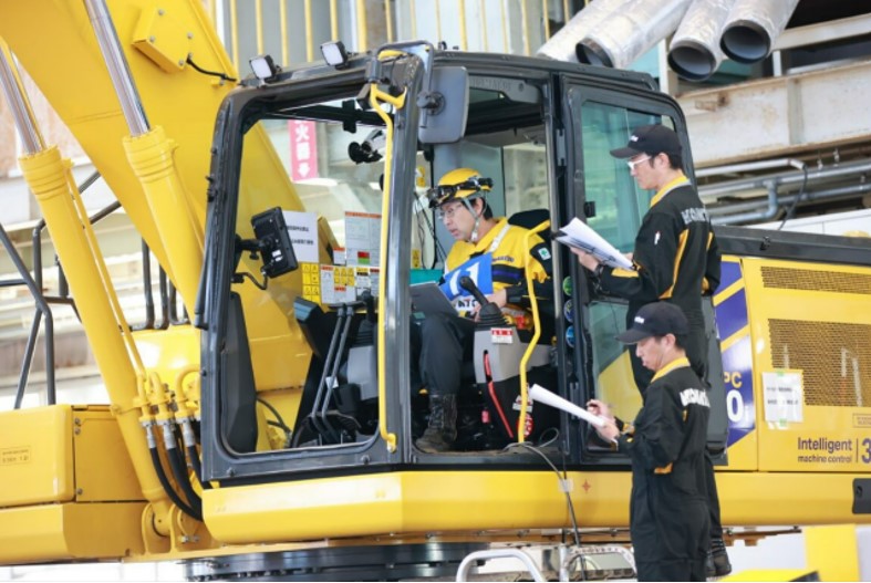 今大会では、ICT建機のさらなる普及を見据えたサービス技能の強化を狙いとして、ICT建機のマシンコントロールに関する故障診断技能を競う「エキシビション部門」を新設しました。昨年12月に販売を開始した新型油圧ショベルPC200i-12の不具合が発生してから解消するまでのプロセスを競技化し、ICT建機の知識とマシンコントロールに関連する不具合時の対応力を競いました。