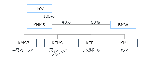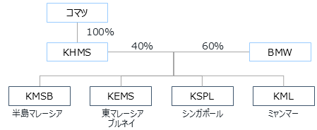 コマツとBMWは、タイでは2010年から、カンボジアでは2015年から、合弁会社を通じて建設・鉱山機械の販売代理店を共同経営してきました。このたび、東南アジアにおける建設・鉱山機械事業の持続的な成長のため、上記4カ国の販売代理店についても、コマツとBMWの合弁会社として共同経営することになりました。 BMWが上記4カ国のKHMS子会社の株式60%を取得し、コマツの出資比率は40%となります。
