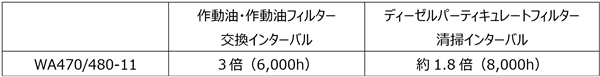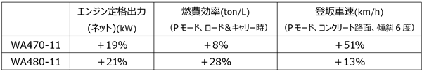※WA470-11はWA470-10との比較、WA480-11はWA480-8との比較。