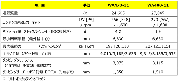【公表価格】 WA470-11 72,000千円、 WA480-11 79,000千円 *工場裸渡し消費税抜き