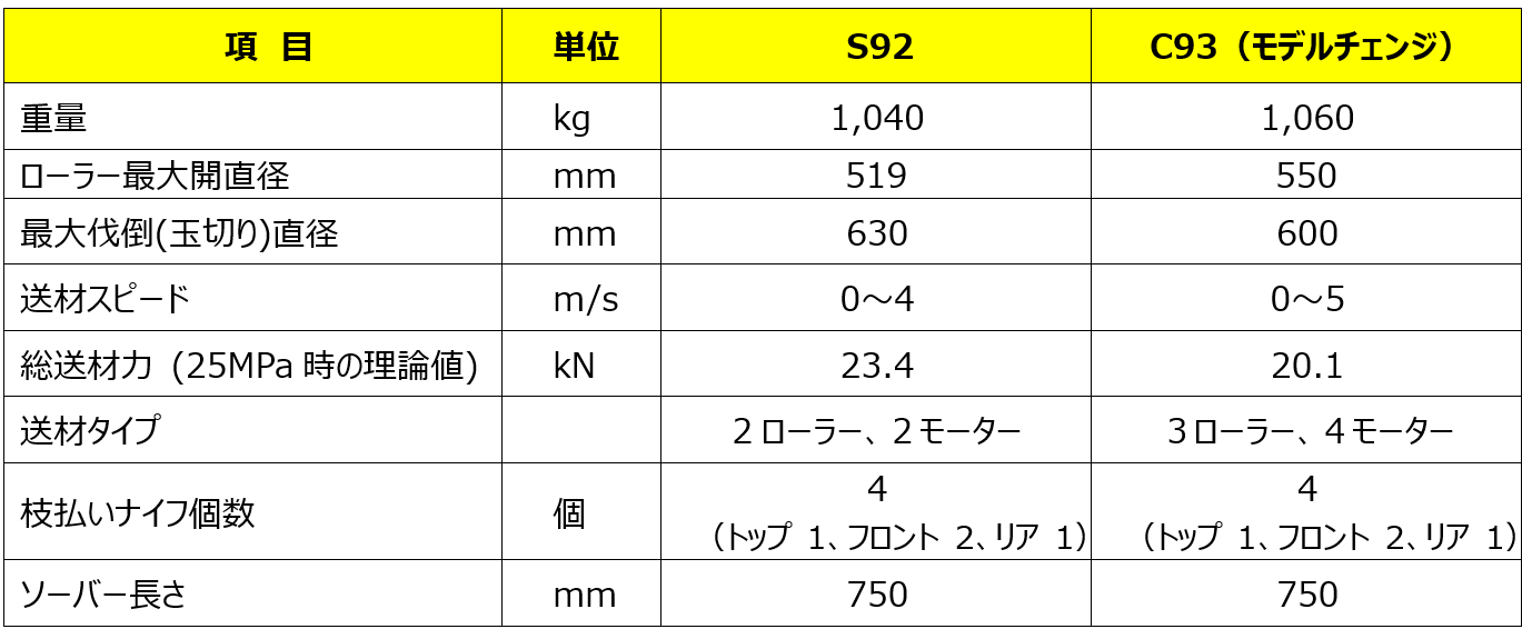 当社は2011年より、高いグリップ力による確実な送材性能に優れるローラーキャリータイプ(※2)のC93を装着したハーベスター仕様車(※3)を日本で販売しており、その生産性に高い評価をいただいています。モデルチェンジによりその性能を一段と高めたC93を、このたびハーベスター仕様車として販売開始しました。