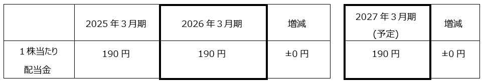 当期の配当金については、当期の業績及び今後の事業展開等を勘案し、期末配当金は、前回の配当予想どおり1株につき95円を予定しています。当期の年間配当金は、既に実施している第2四半期末の配当とあわせ、1株につき190円となり、前期(2025年3月期)実績と同額、連結配当性向は45.9%となります。第157回定時株主総会(本年6月23日に開催予定)に提案する予定です。