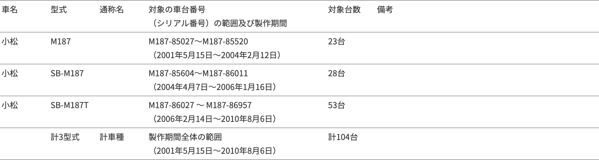 - 対象車の車台番号(シリアル番号)の範囲及び製作期間