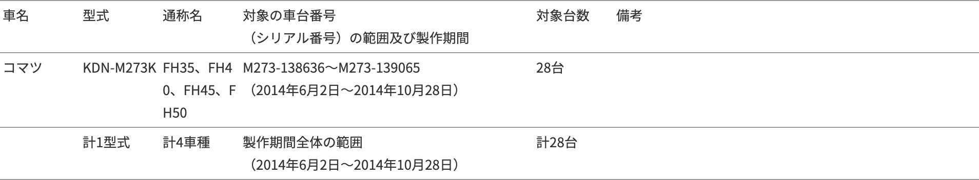 2014年12月19日、コマツは国土交通省に対して、下記の通りサービスキャンペーン通知書を提出しましたので、お知らせします。 サービスキャンペーン情報