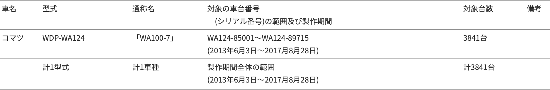 2019年4月26日、コマツは国土交通省に対して、下記のリコール届出書を提出しましたので、お知らせします。