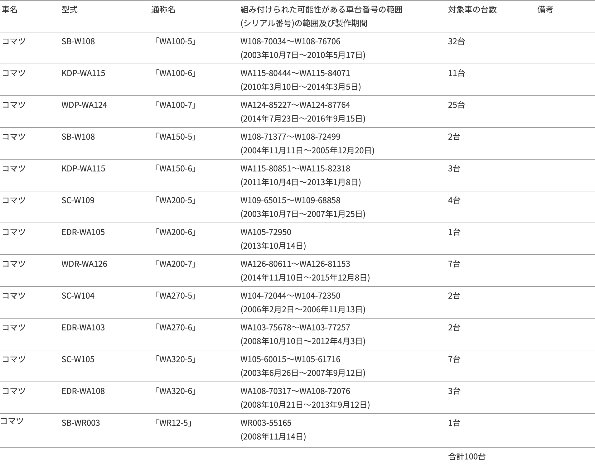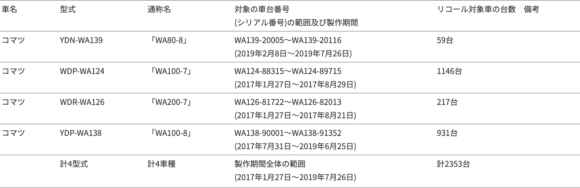 2019年12月25日、コマツは国土交通省に対して、下記のリコール届出書を提出しましたので、お知らせします。
