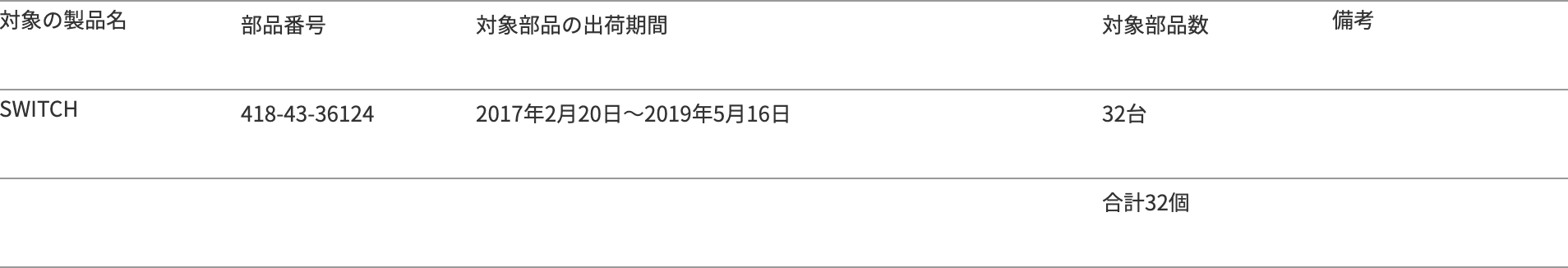 交換修理用部品として出荷し、組み付けられた可能性がある車両の範囲