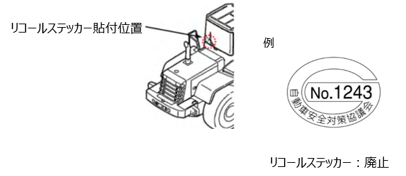 コマツは、リコールによる改修を実施した車両に貼付しておりましたリコールステッカーを、2020年11月1日より廃止します。なお、2020年10月31日以前に届出を行った案件については、従来どおりリコールステッカーを貼付します。