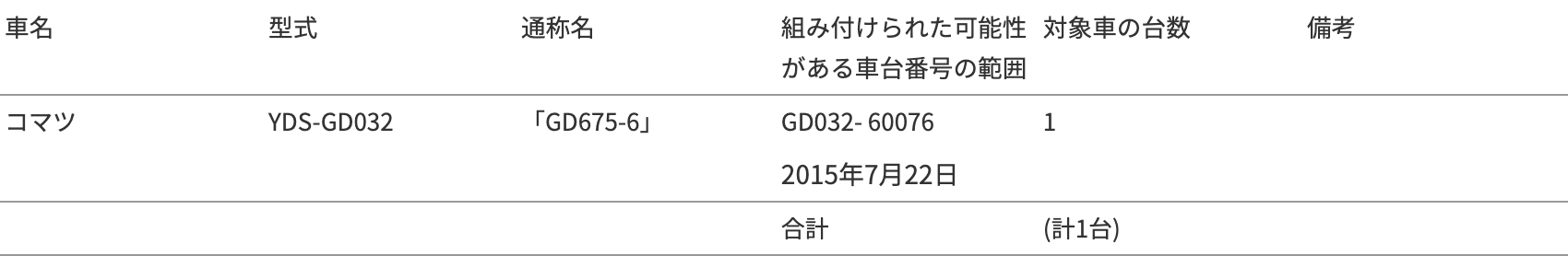 【注意事項】改善対策対象車の車台番号の範囲には、対象とならない車両も含まれている場合があります。