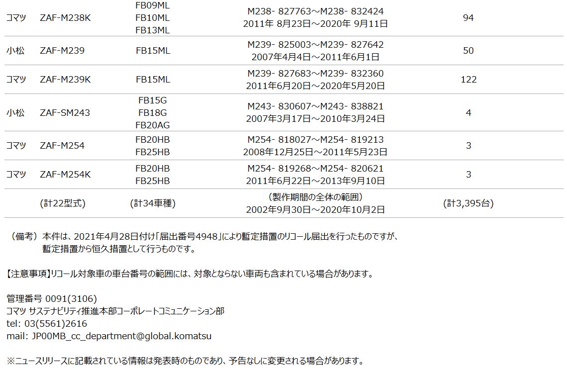 [リコール情報] フォークリフトのアクセルペダルに関するリコール届出について
