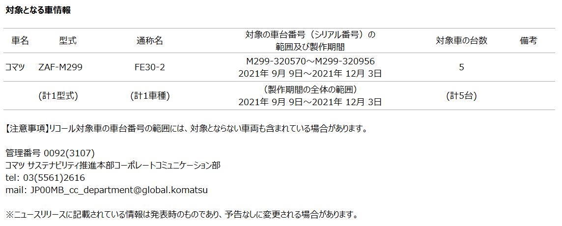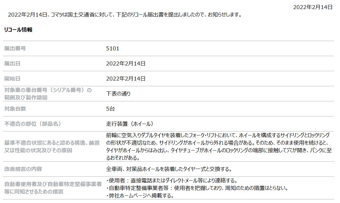 [リコール情報] フォークリフト「FE30-2」に関するリコール届出について