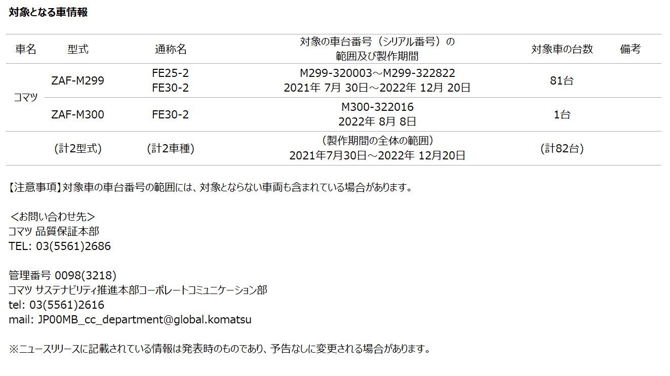 [リコール情報] バッテリー式フォークリフト「FE25-2、FE30-2」の窓ふき器(ワイパーアーム)に関するリコールについて