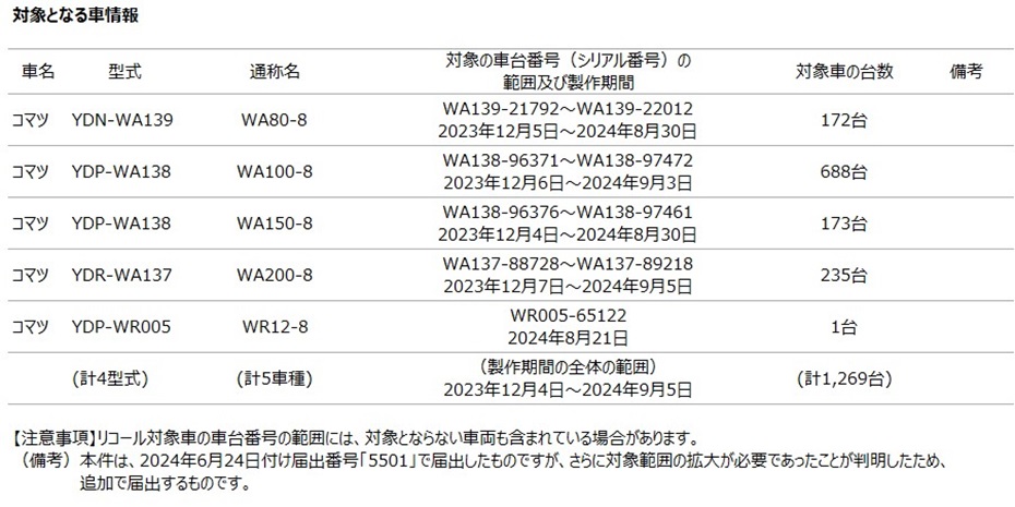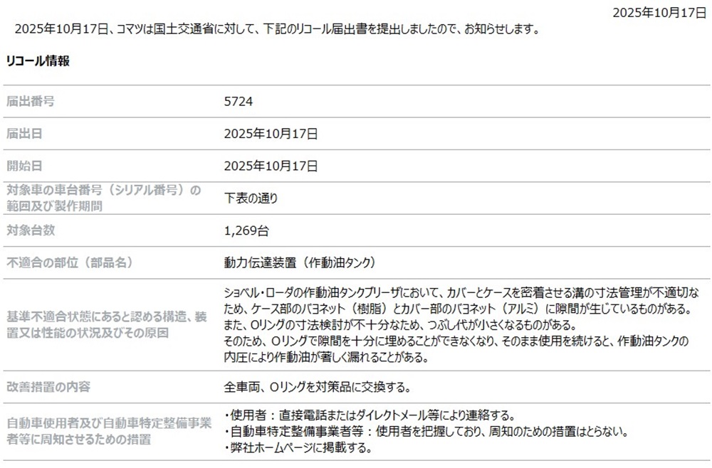 [リコール情報] ショベル・ローダの動力伝達装置(作動油タンク)に関するリコール届出について