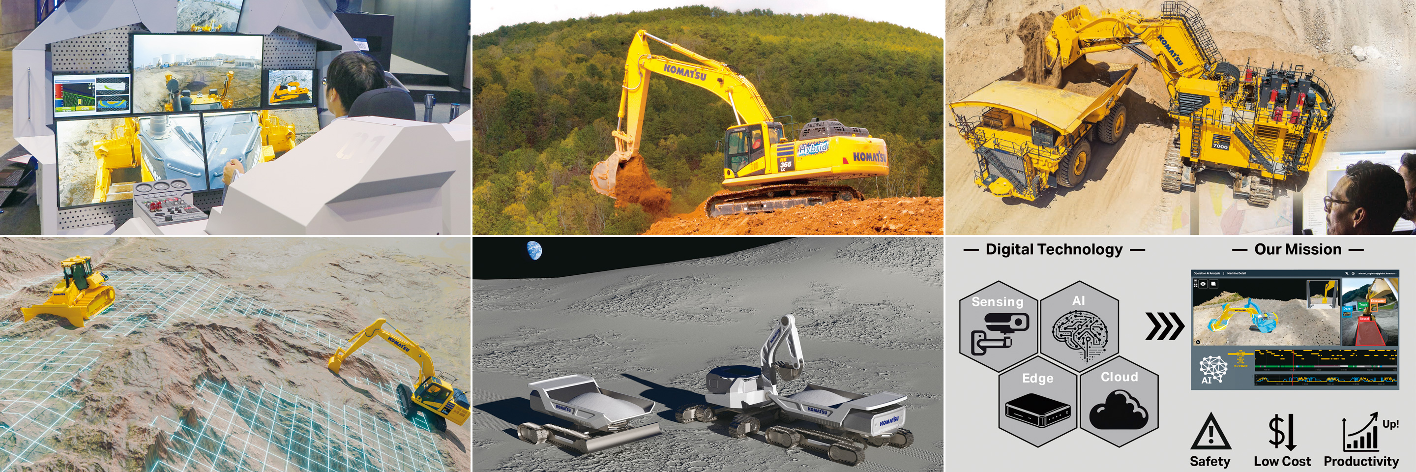 世界初の無人ダンプ自動運行システム(AHS)を商用導入した実績を元に、さまざまな先端技術(自動運転、 ロボット工学、AIなど)を使って、大型ブルドーザーの遠隔操作システムなど、鉱山機械の自動化・遠隔化 製品の研究・開発を行っています。