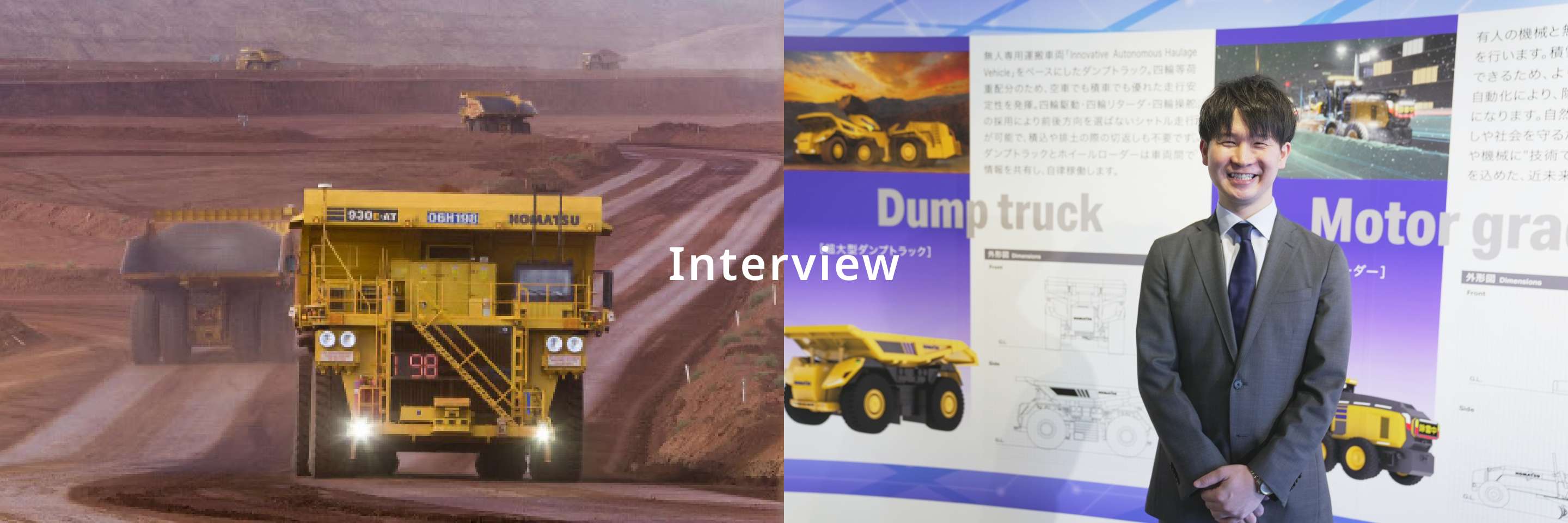 データ分析の業務をしていて、現場や製品に対する知識が足りずに頭を悩ますことがよくあります。そんな時は実際に現場を訪問してリアルな情報に触れたり、社内のさまざまな部署の方と意見交換をするように心がけています。私たちにもデータサイエンティストの立場として理想はありますが、各部署それぞれの立場や現場感があり、意見のすり合わせもなかなか一筋縄にはいきません。特にAHS*関連のビジネスは世界的な資源メジャーのお客さまとやり取りをするため、現場サポート・マーケティングビジネス関連の部署の方と接する機会が多くあります。お客さまのニーズに合ったサービスを提供できるよう何回も打ち合わせを重ねて社内で事前にしっかり認識合わせをすることを大切にしています。コマツのビジネスは本当に世界が広いので、社内でも相手の立場を理解するために知っておくべき情報が多く、日々勉強ですね。上司は「歌って踊れるデータサイエンティストになってほしい」とよく言います。万能なデータサイエンティストになるためにも、いろいろな知識を吸収して、より多くのビジネスに関わっていきたいですね。 *Autonomous Haulage System