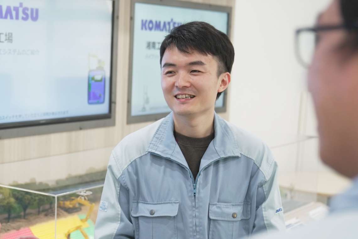 私の部署では、AHS*を中心とした鉱山オペレーション向けの自動化製品の開発を行っています。主に鉱山トラックの自動走行制御や周囲を認識するための車体システムの開発、鉱山内の複数の自動運転トラックを管理して協調的に制御する管制システムの開発に携わっています。加えて、シミュレーションや実車を利用したシステムの試験や品質保証も私たちの部署の仕事です。トラックの車体、通信システムや鉱山管理システムはアメリカのグループ会社が開発を実施しているので、米国の開発者たちと連携しながらAHSを開発しています。アメリカの新しい技術を取り入れる早さ、日本の一つのシステムの作り込みの精密さ、それぞれの良さを活かして、製品を作り上げています。 *Autonomous Haulage System