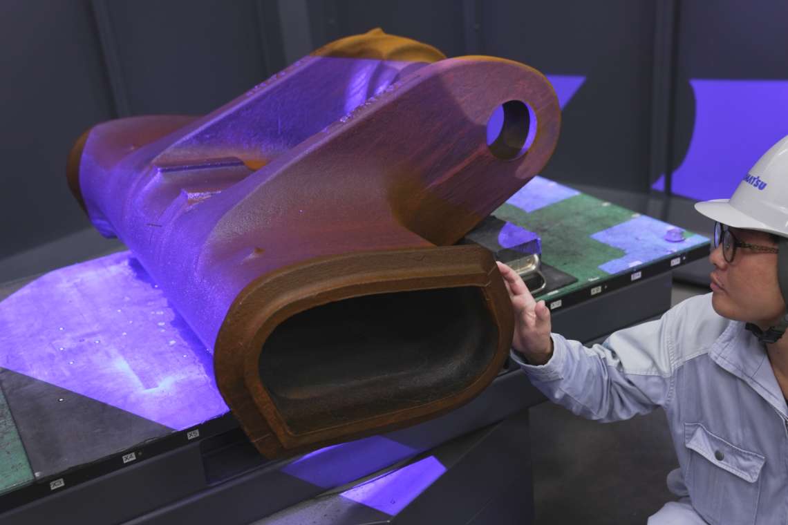 鉱山現場は過酷な環境であり、お客さまが建設機械に求めるのは壊れないことなんです。D475A-8の開発では、鋳物(鋳鋼)はフレーム、作業機などの車体構造物の中でも特に高負荷部位に使用することから、高い品質を求められました。車両サイズが大きいため、中には1部品で全長1.4m・重さ1.3トンを超える大型の鋳物もあり、試作時に多くの時間と知識を費やしました。また、品質と生産性の両立には鋳物形状の最適化が必須です。自社内に鋳造部門がある利点を生かし、チームワークを大切に日々車体設計部門と協力しながら開発にあたりました。