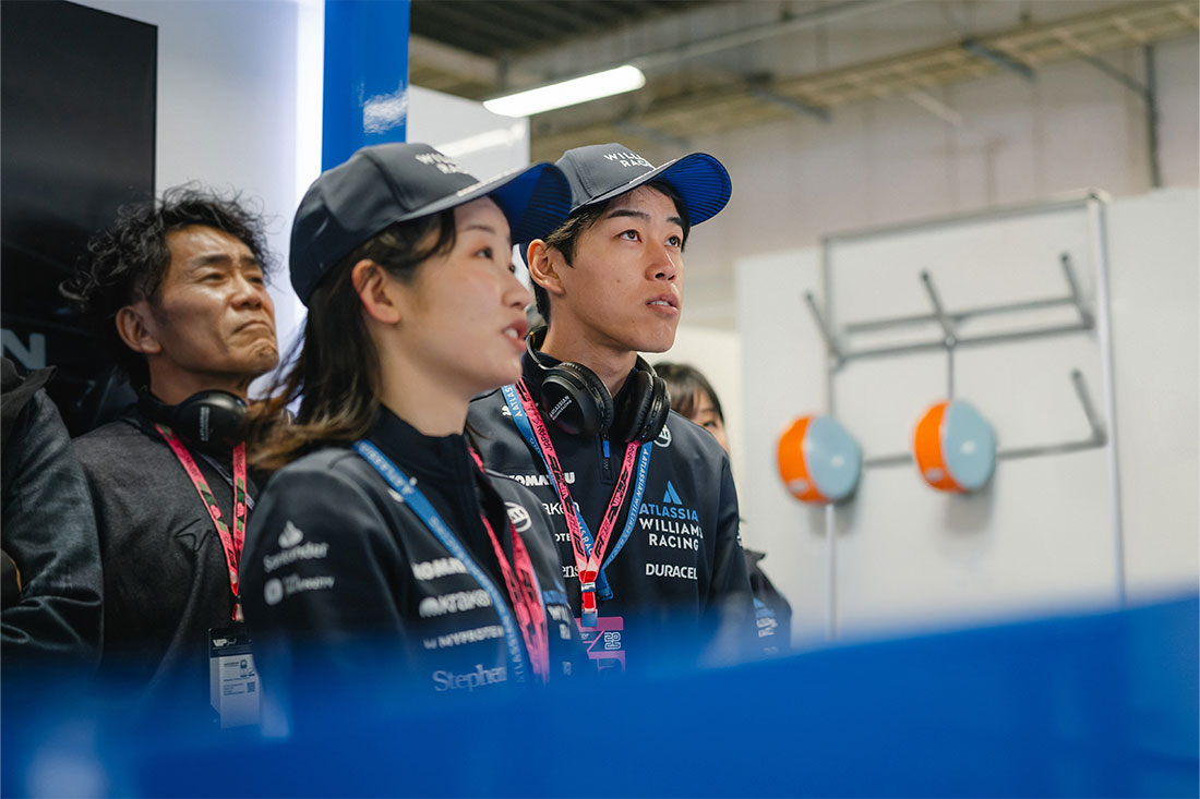 「デイ・イン・ザ・ライフ」での体験では、首藤と上原が、まずアトラシアン・ウィリアムズ・レーシングのスタッフと面会し、パドックやピットレーン、ガレージエリアを見学した後、FW47 をピットに押し入れる作業を手伝いました。 「車の軽さに驚きました」と上原は言います。