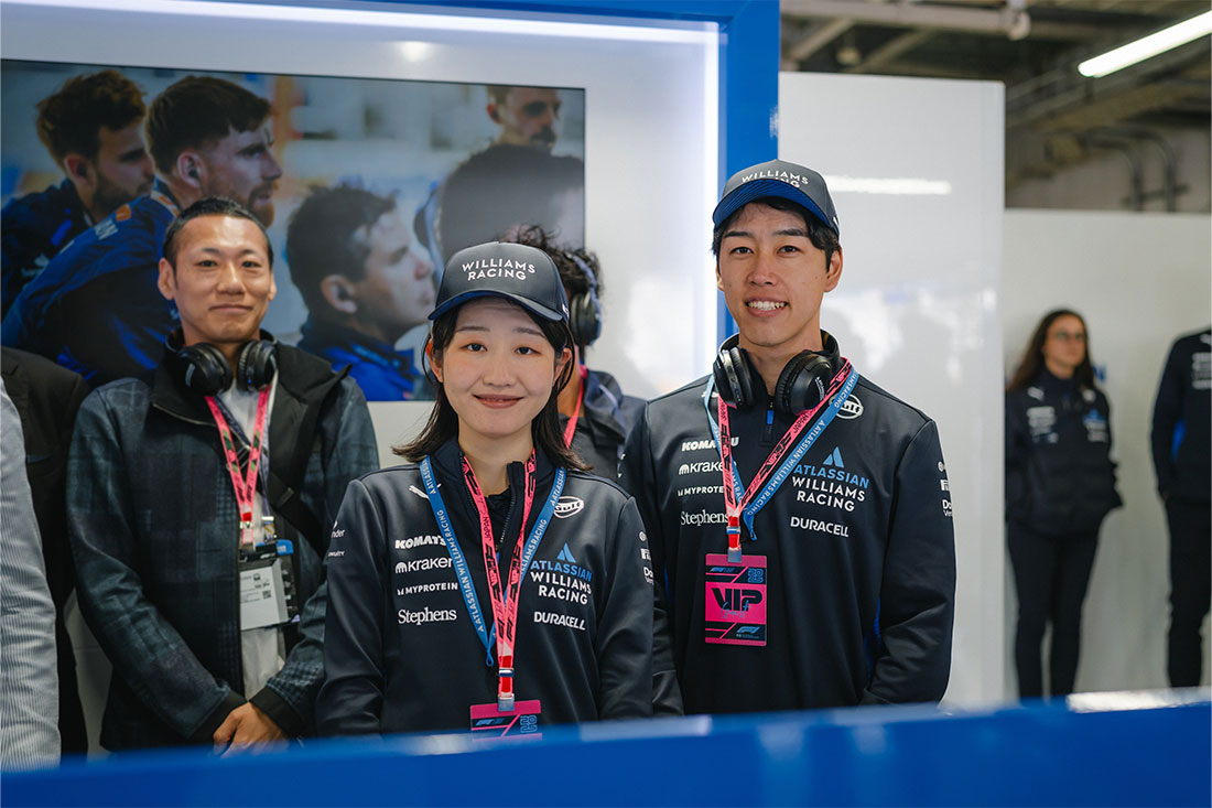 ともにコマツ大阪工場で勤務する首藤洋輔と上原萌花は、「デイ・イン・ザ・ライフ」プログラムを通じて、アトラシアン・ウィリアムズ・レーシングの名誉メンバーとして、モータースポーツの世界を深く経験する機会を手にしました。
