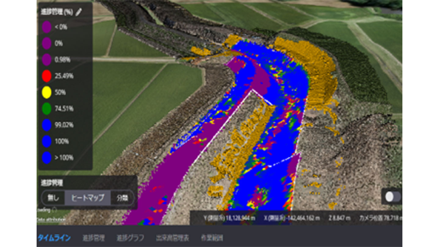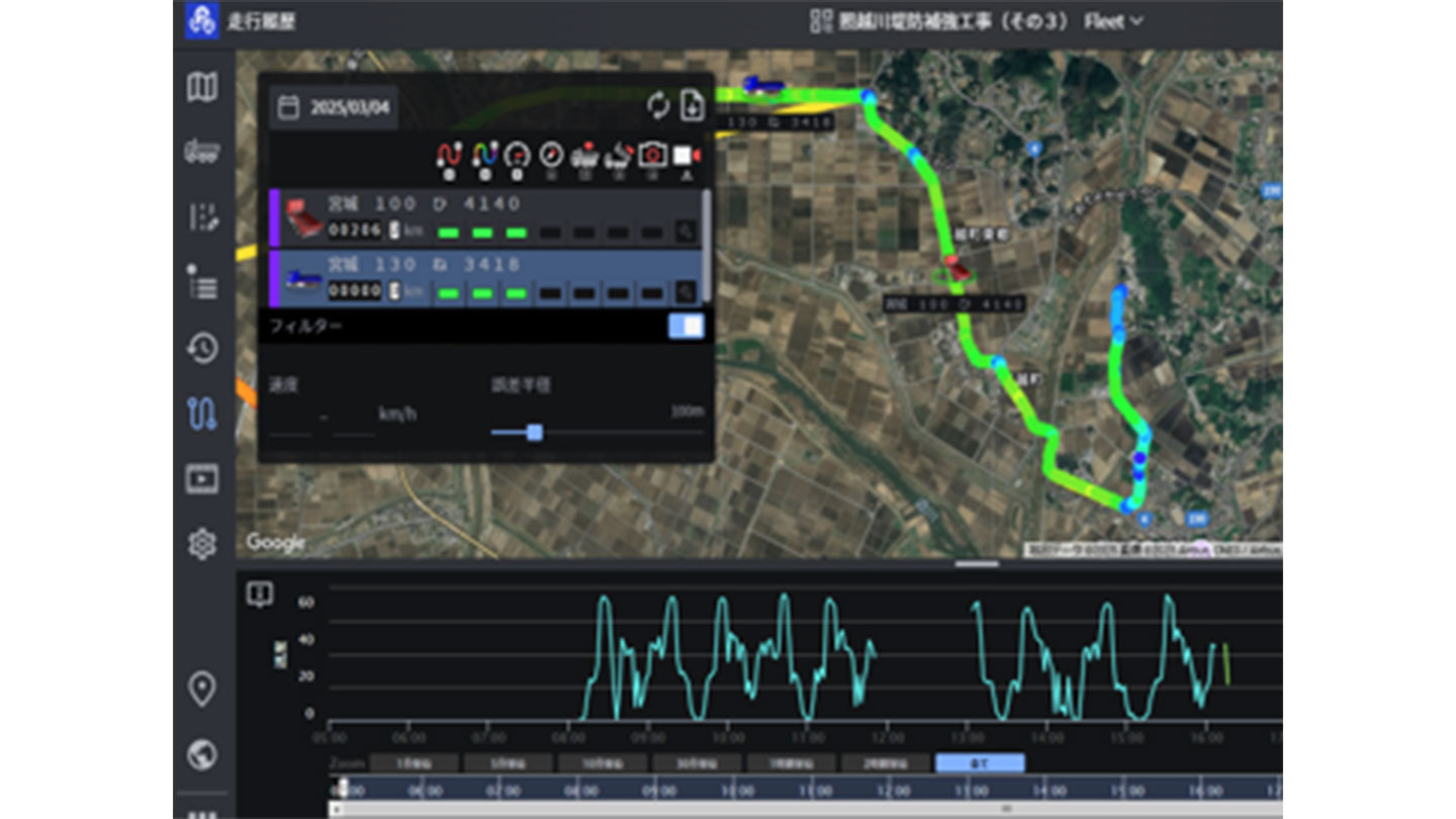 また、Smart Construction Fleetによる走行実績の管理では、さまざまな実績データが可視化・整理されており、管理がしやすくなりました。さらに、ペイロードメーター機能により、積み込み時のおおよその重量が把握できたことで、過積載を防止でき、結果として作業効率が従来より20~30%向上しました。