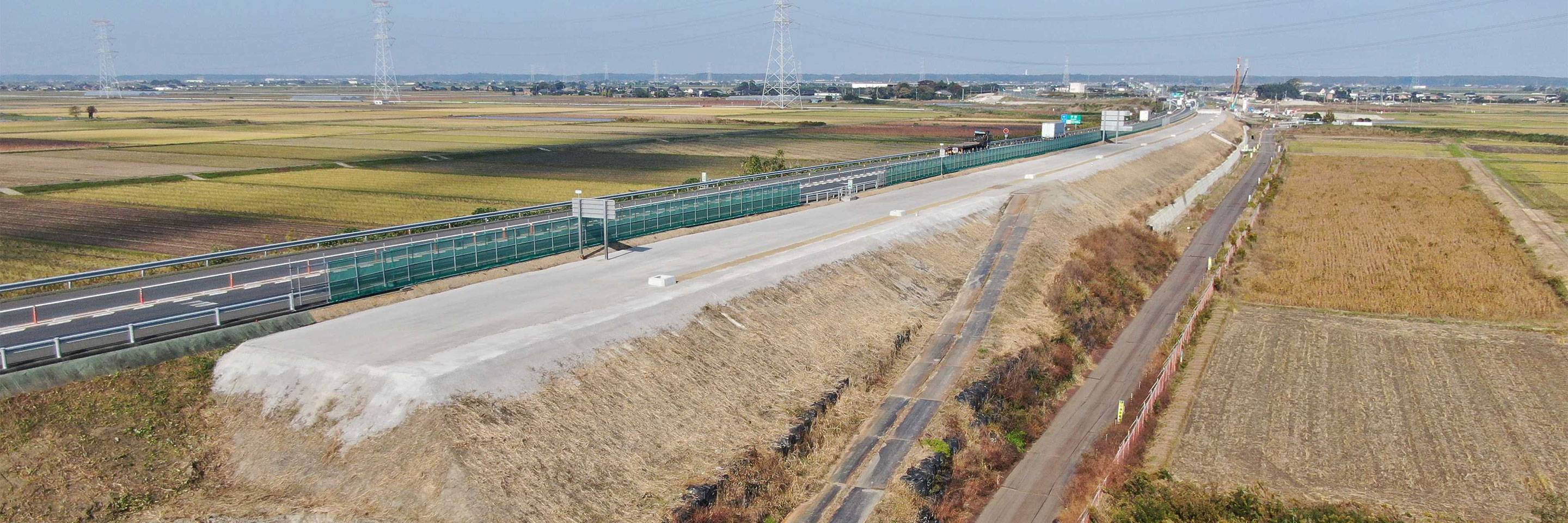 東邦建設(株) 工事部 井澤理行さん 今回の工事は高速道路拡幅のための築堤工事でしたが、別工区は他の業者がすでに施工を担当していました。そのため、施工済み部分の境目の転圧数を合わせるのが難しいという課題がありました。