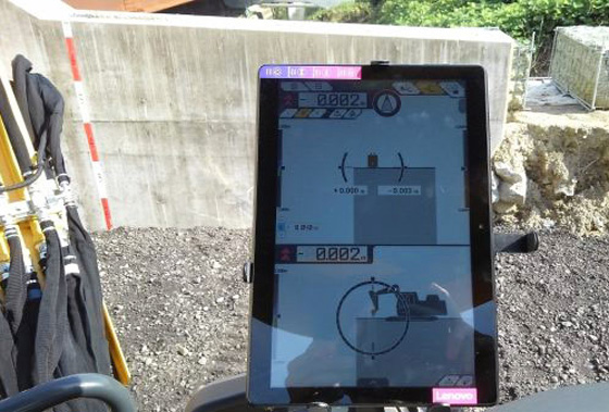 ■■導入効果■■ (有)森木組 工事主任 坂本開世さん 建機内のモニタ画面に表示される設計データを元に施工を行い、刃先を合わせることで仕上がり高さの確認もできるため、丁張り削減と建機周りの人員を減らすことができ安全な施工が実現しました。従来であれば仕上がり高さの確認に合図者が必要ですが、レトロフィットキットの搭載されたPC30MRであればオペレータ1人で2人分の作業ができました。また、盛土の品質管理に導入した転圧管理システムも、従来であれば転圧回数把握にカウンターを使い手動で数えていたためヒューマンエラーの心配がありましたが、転圧管理システムは転圧結果をリアルタイムに一目で確認でき、心配することなく大変感動しました。小規模ICT土工に取り組めたことは弊社として大きな実績になり、また大変勉強にもなりました。新しい技術や取組があれば是非またスマートコンストラクションを導入したいです。