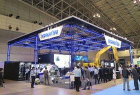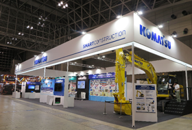 コマツは、「もっと安全で、もっと生産性の高い、もっとスマートな未来の現場を!」をテーマに、未来の現場実現へ向けた取り組みを当社ブースのほか、当社とパートナー企業との共同出展ブースやパートナー企業ブースでのコラボレーションでスマートコンストラクションをご紹介しています。