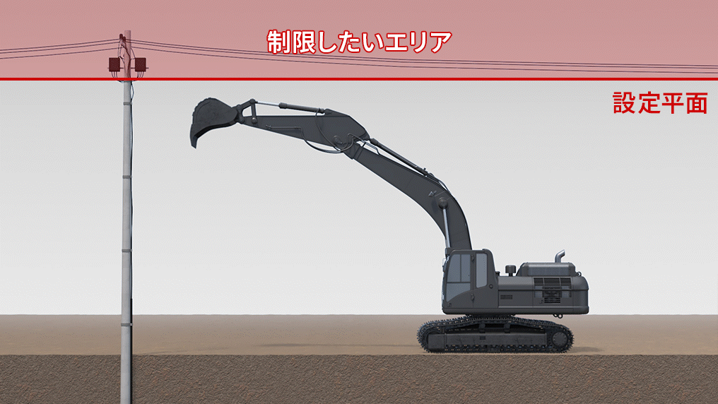 高さ、深さ、前方、後方、側面に作業制限平面を設定でき、