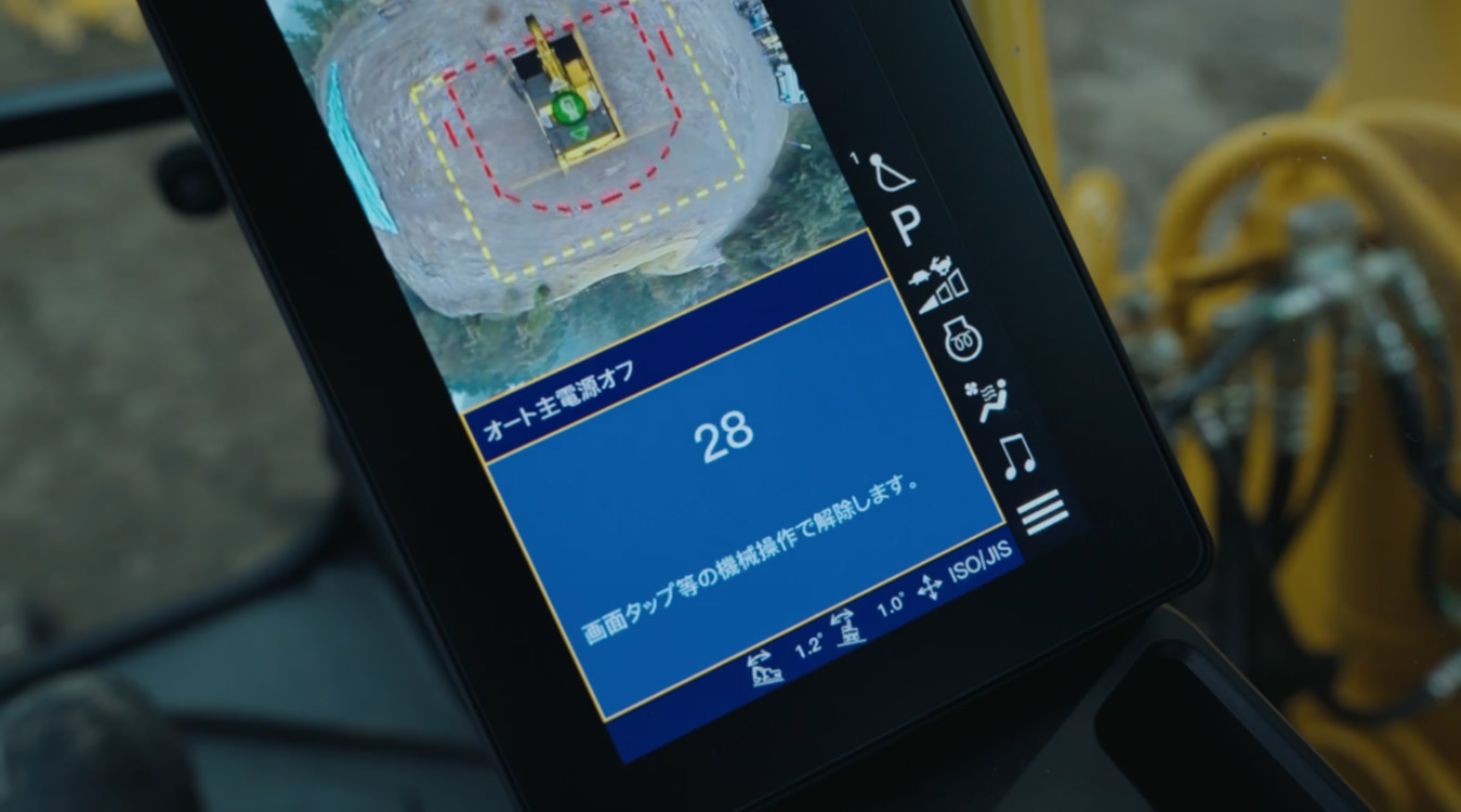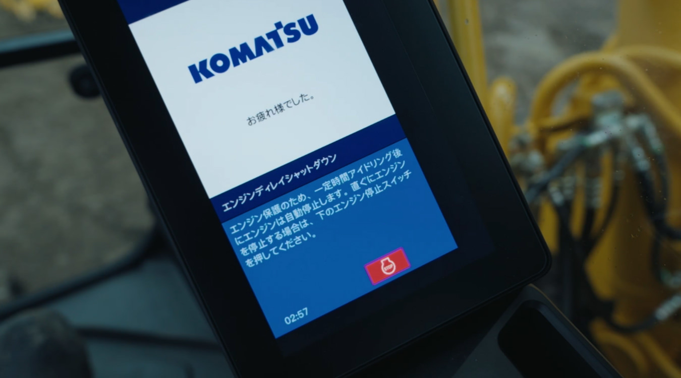 始動スイッチをOFFにしても、エンジンや後処理装置が高温の時には冷却を続け、温度が下がったら自動でエンジンが停止し、主電源もオフになる機能です。これによりオペレータは冷却を待たなくても作業を終えることができます。
