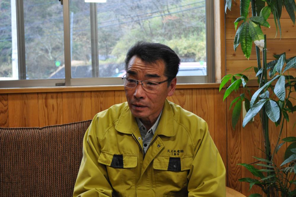(写真:インタビューに答える工藤洋一久大林産㈱社長)