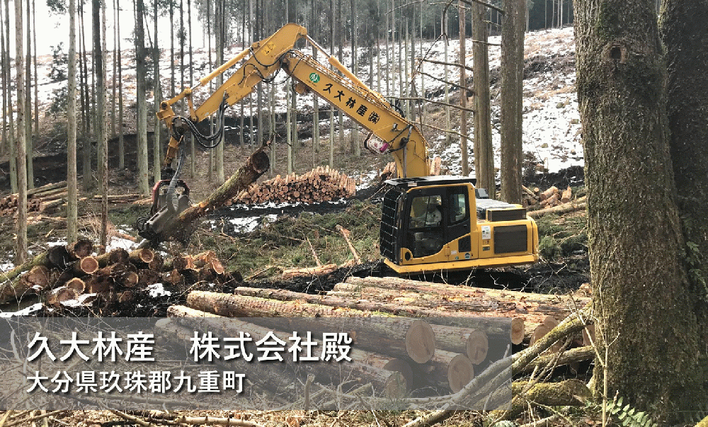 「平成3年の台風19号後の風倒木処理の経験から、安全面はもちろん効率性の点から林業の機械化を痛感した」と語る久大林産㈱(大分県玖珠郡九重町)の工藤洋一社長。同社は、以後積極的な重機導入により、林道の造成や、伐採作業など、一連の山林作業の効率化、システム化を推進し大幅なコストダウンを実現した。