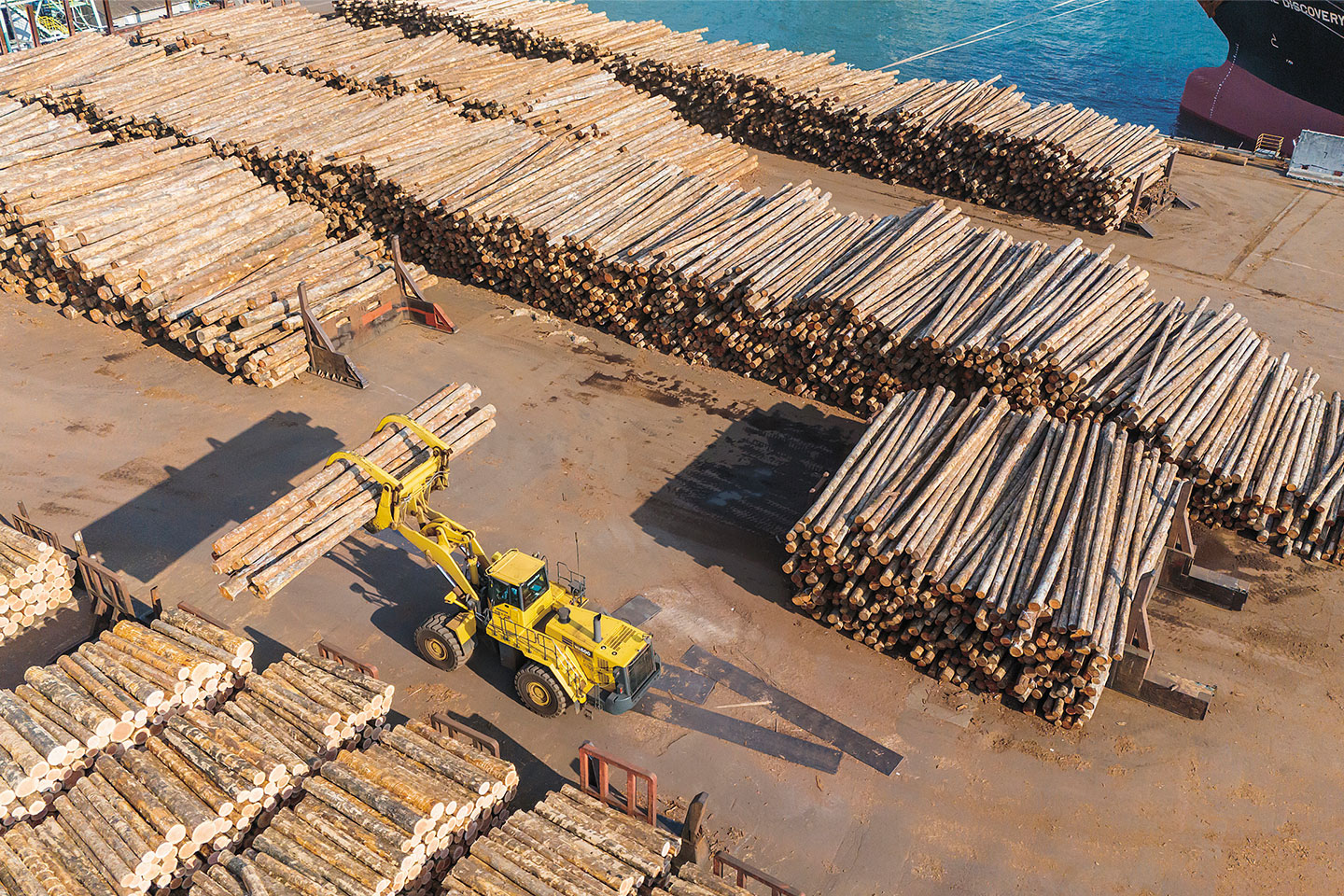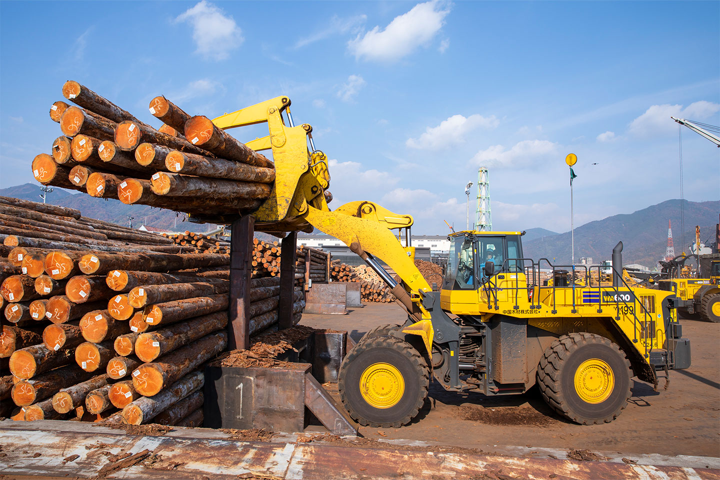 現在、米国から輸入する米松丸太の製材拠点は、広島県呉市の本社工場と、茨城県神栖市の鹿島事業所の2カ所。また、国産材の取り組みも強化しており、6つの製材拠点を通じて国産材の活用を推進している。さらに同社は、木材産業の循環型経済を目指し、国内に約11,000haの自社林を管理するとともに、植林用の杉苗の生産も行っている。
