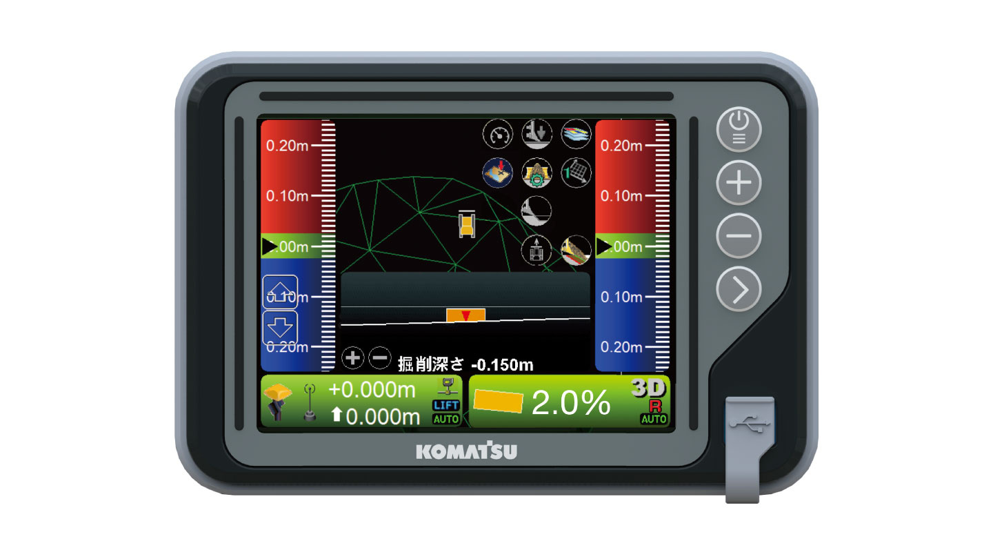 GNSSアンテナ、慣性センサーユニット、ストロークセンサー付油圧シリンダを装備。