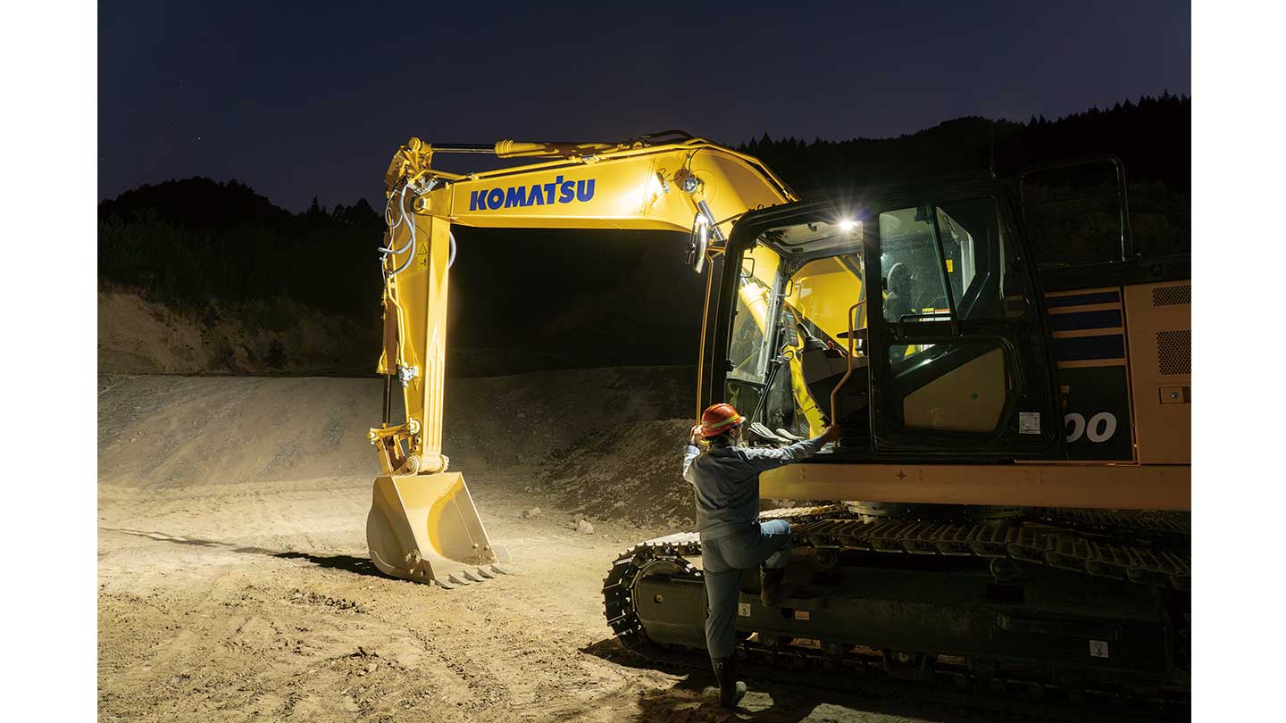KomVision 衝突検知ブレーキシステムは、人、物を検知可能 機械周囲カメラシステムは360度に拡大