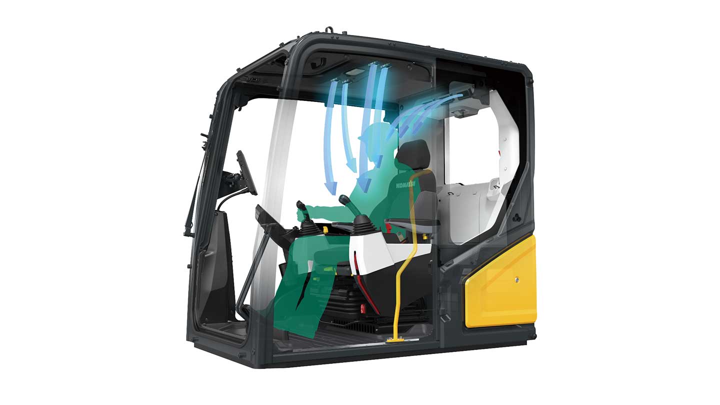 KomVision 衝突検知ブレーキシステムは、人、物を検知可能 機械周囲カメラシステムは360度に拡大
