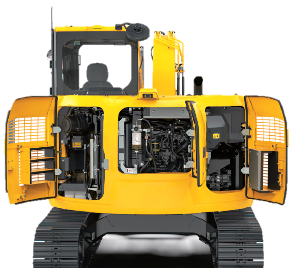 エンジンルームの構造変更等により従来機に比べて周囲騒音を5.2dB(A)低減し、7トンクラスの油圧ショベルでトップクラスの超低騒音を達成しました。都市工事や夜間工事にも安心してご使用いただけます。