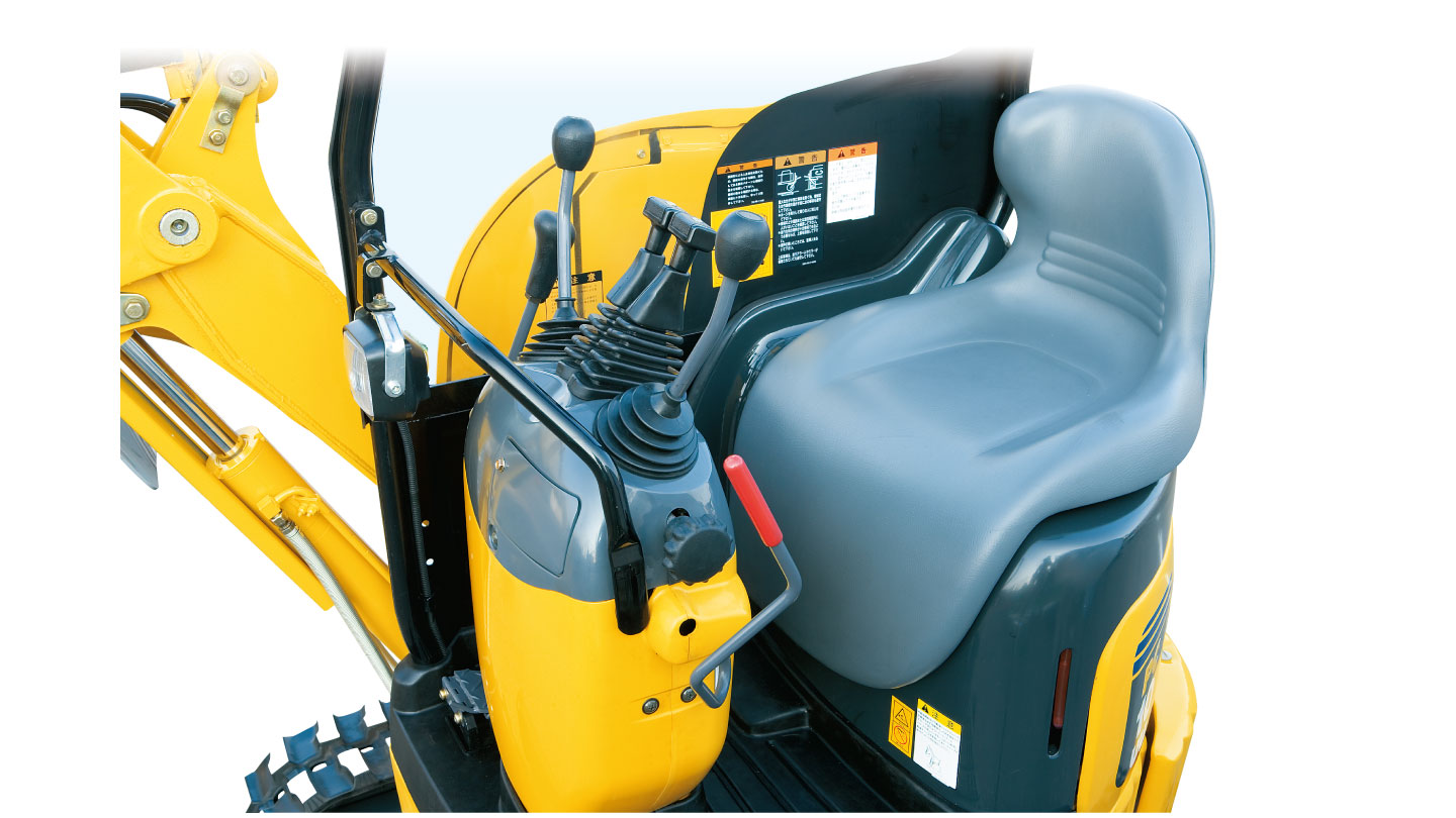 - ロックレバー:降車時に作業機の油圧回路をロックして誤操作を防止します。
