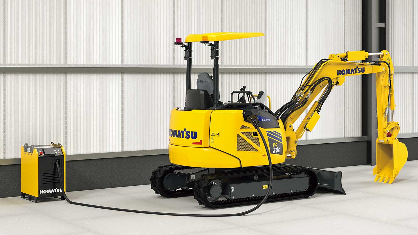 コマツ独自の充電制御システムにより、大容量の充電を効率的に短時間で行える定置式急速充電器を採用しました。
