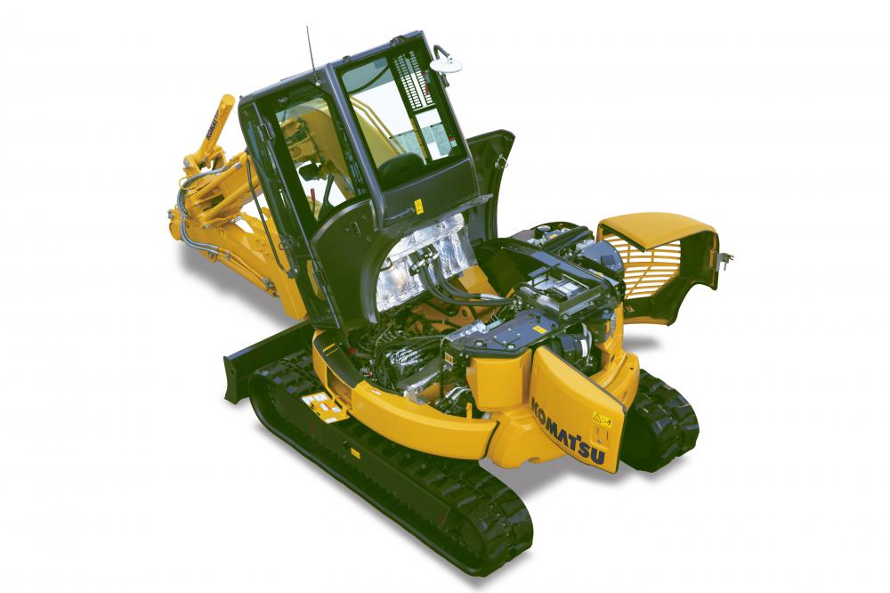 排出ガス後処理システムコマツディーゼルパティキュレートフィルター(KDPF)、電子制御クールド排出再循環(EGR)システム、コモンレール式最適燃料噴射システムなどの様々な環境対応技術を織り込んだ新型エンジンにより、NOx(窒素酸化物)とPM(粒子状物質)の排出量を大幅に低減しました。また、新たにEモード、オートデセル、オートアイドルストップ機能を採用すると共に、エンジンと油圧システムを最適に制御するコマツ独自の電子制御システムの採用などにより燃料消費量を当社従来機に比べ4%低減しました。