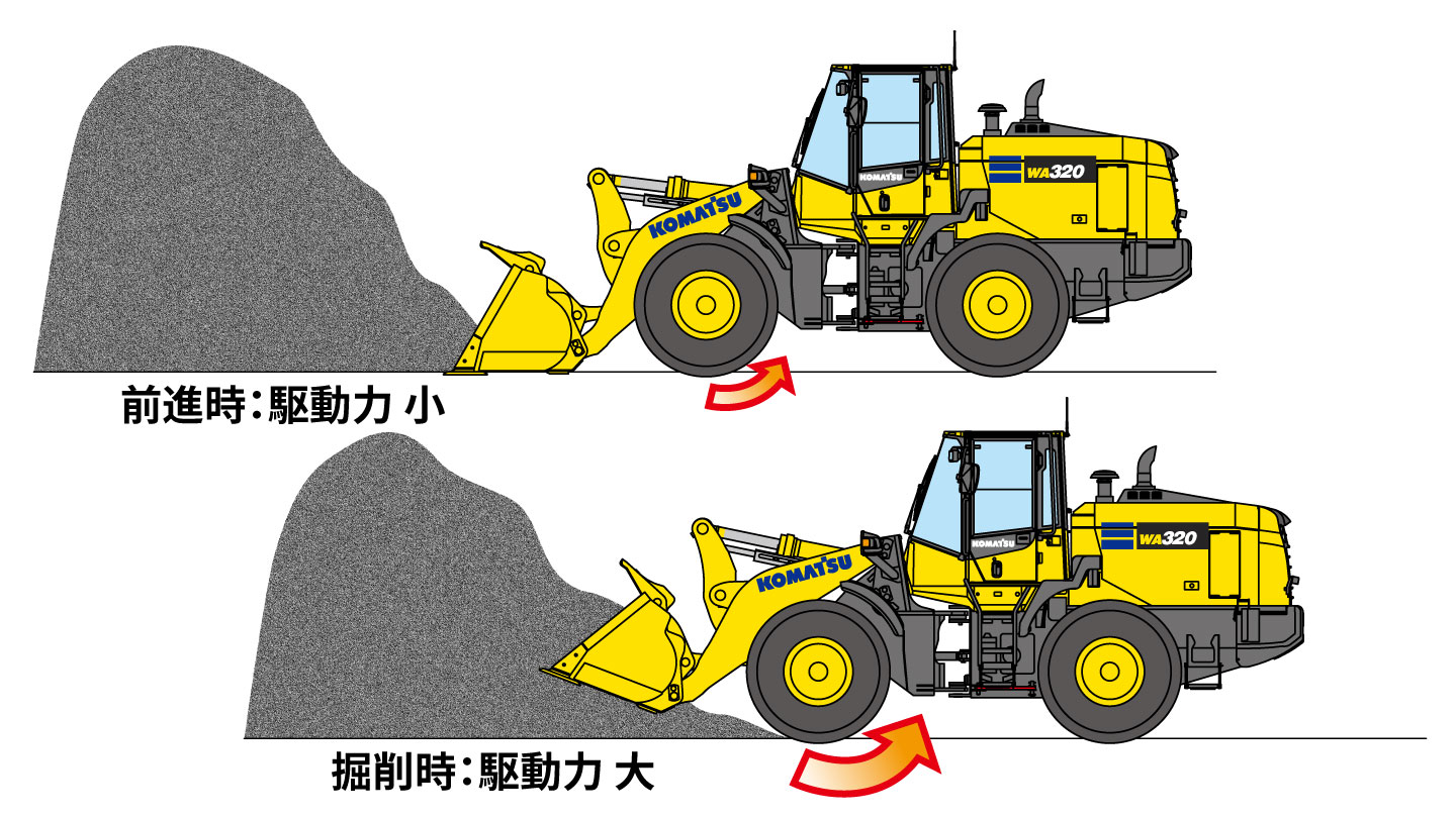 作業負荷に応じ最適なエンジントルクを発生させることで燃費効率の向上を実現する、エンジン制御システム「コマツ スマートローダーロジック」を採用。生産性と経済性のより高い次元での両立に貢献します。